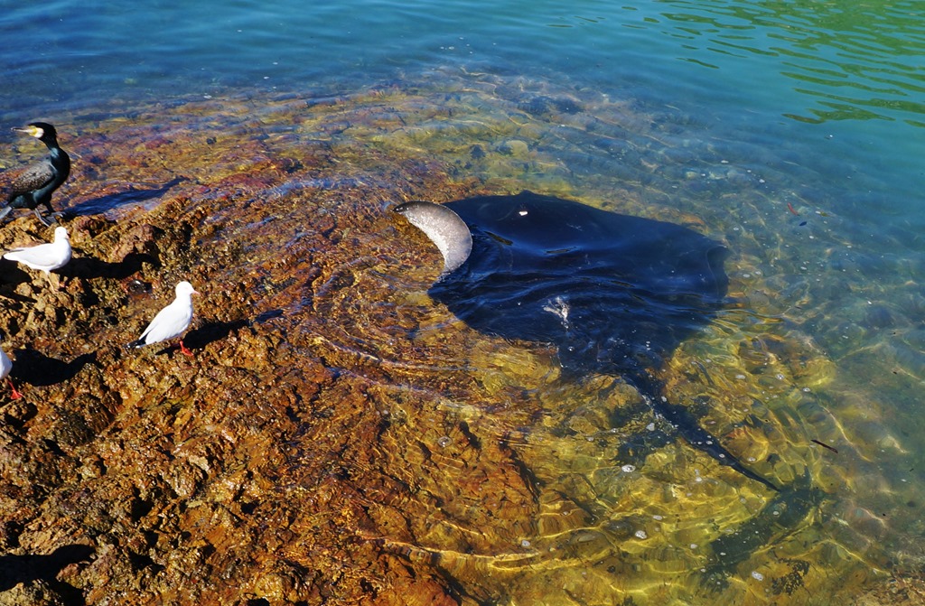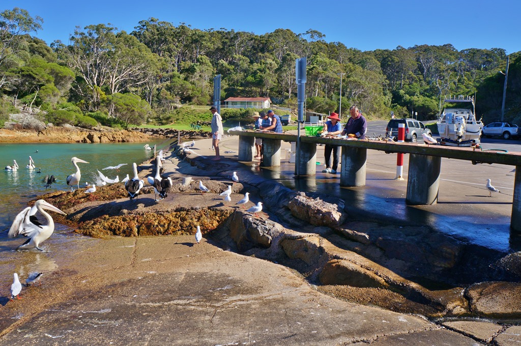 Der Platzwart hat uns den Tipp gegeben doch unbedingt die Kianinny Bucht zu besuchen. Am Morgen zwischen zehn und elf reinigen die Fischer hier ihren Fang und werfen die Fischabfälle ins Wasser.