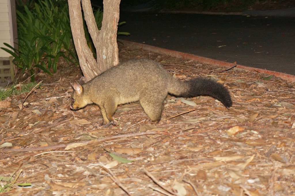 Abends hat uns ein Possum besucht. Es zeigte überhaupt keine Scheu. Ganz nahe bei der Kamera hat es versucht mit dem Objektivdeckel zu spielen. Das Foto ist leider nicht gelungen. Das Possum war zu nahe beim Objektiv.