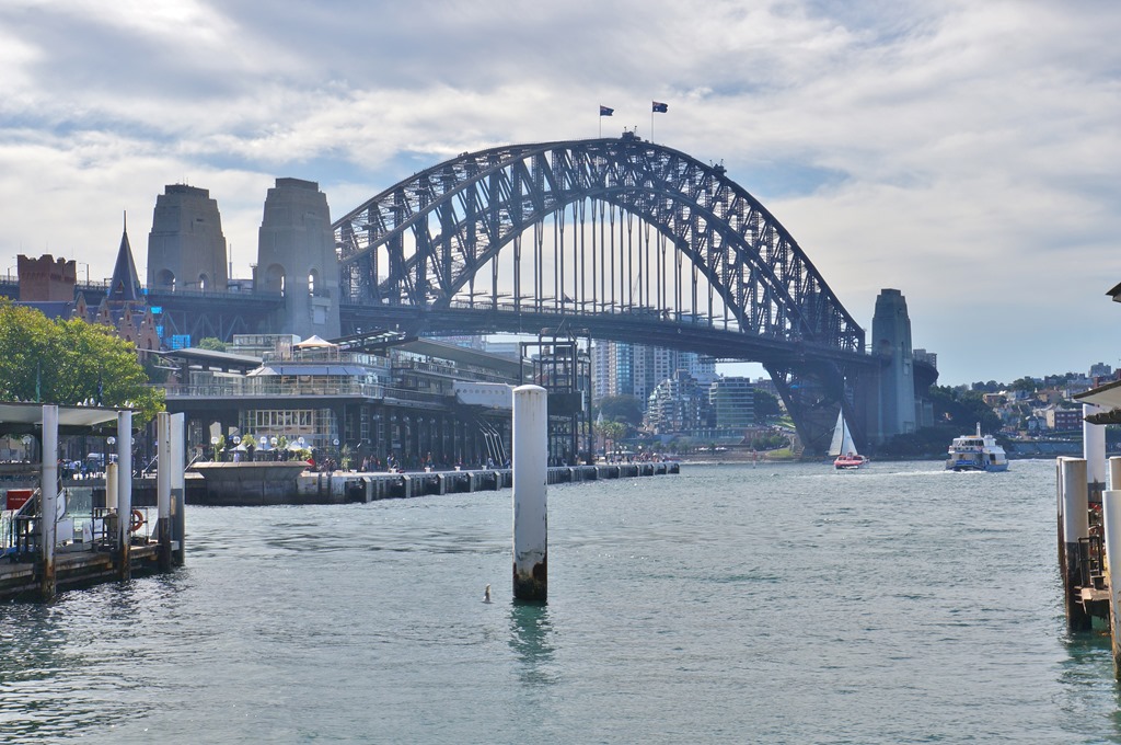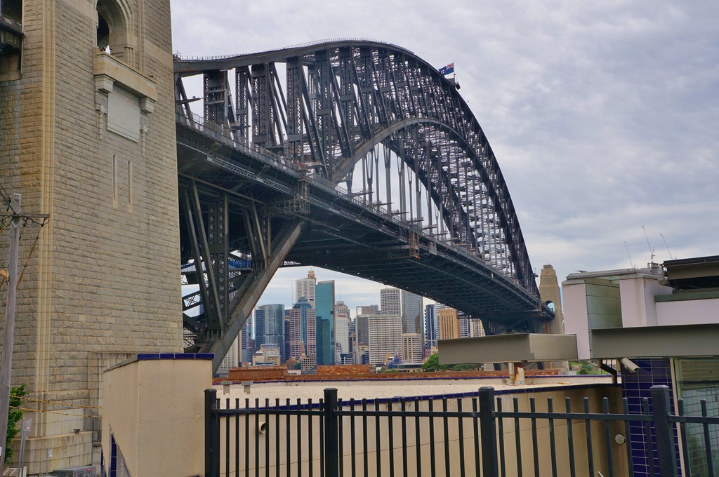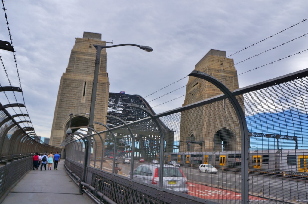Wir sind in der Nähe der Hafenbrücke ausgestiegen und marschieren hoch über dem Hafen bis zum anderen Ufer.
