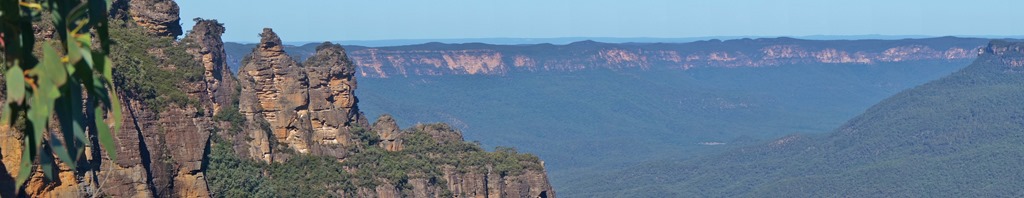 Nicht weit ins Landesinnere liegen die Blue Mountains. Sie erhielten ihren Namen vom blauen Dunst der bei Sonnenschein gut zu sehen ist. Der Dunst wird erzeugt von den ätherischen Ölen die die vielen tausend Eukalyptusbäume absondern. Die Sonnenstrahlen brechen sich darin und die Gegend erscheint blau.