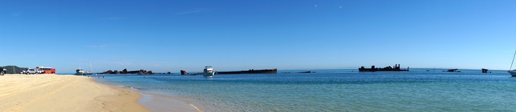 Wir haben einen Tag auf der Insel verbracht. Ein Strandspaziergang führt uns zu den nahe am Ufer liegenden Wracks. Taucher und Schnorchler schwimmen die kurze Strecke zu den Schiffen.
