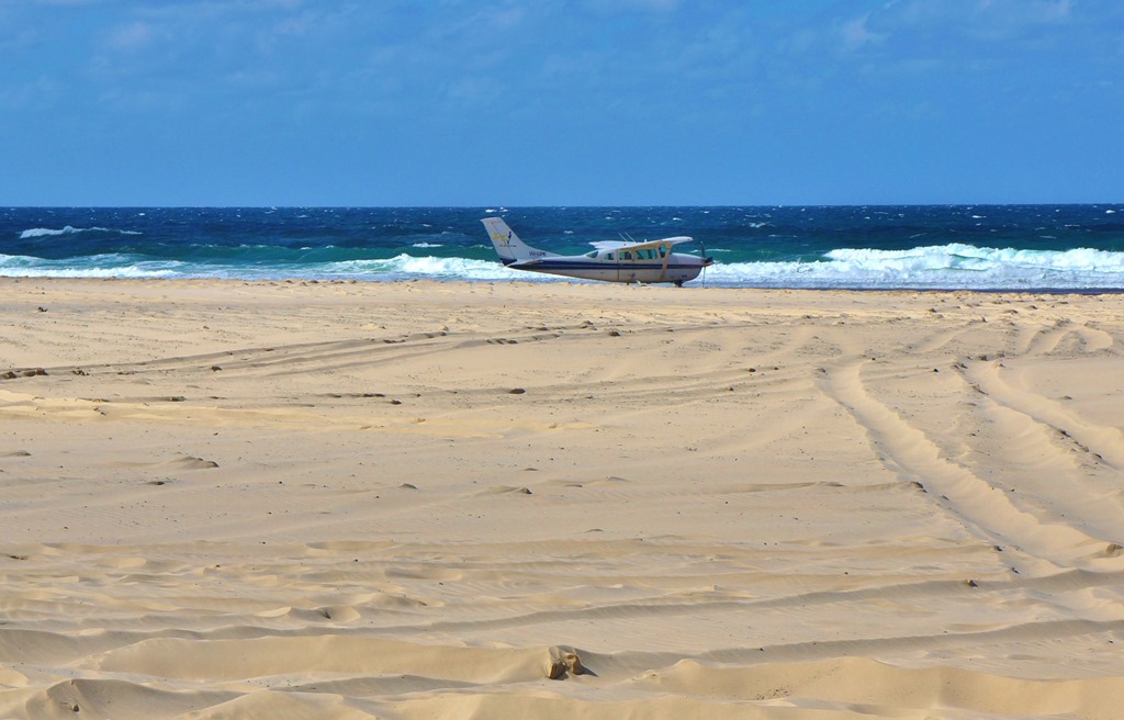 Ein kleines Flugzeug startet am Strand. Es werden 15minütige Rundflüge über die Insel angeboten.