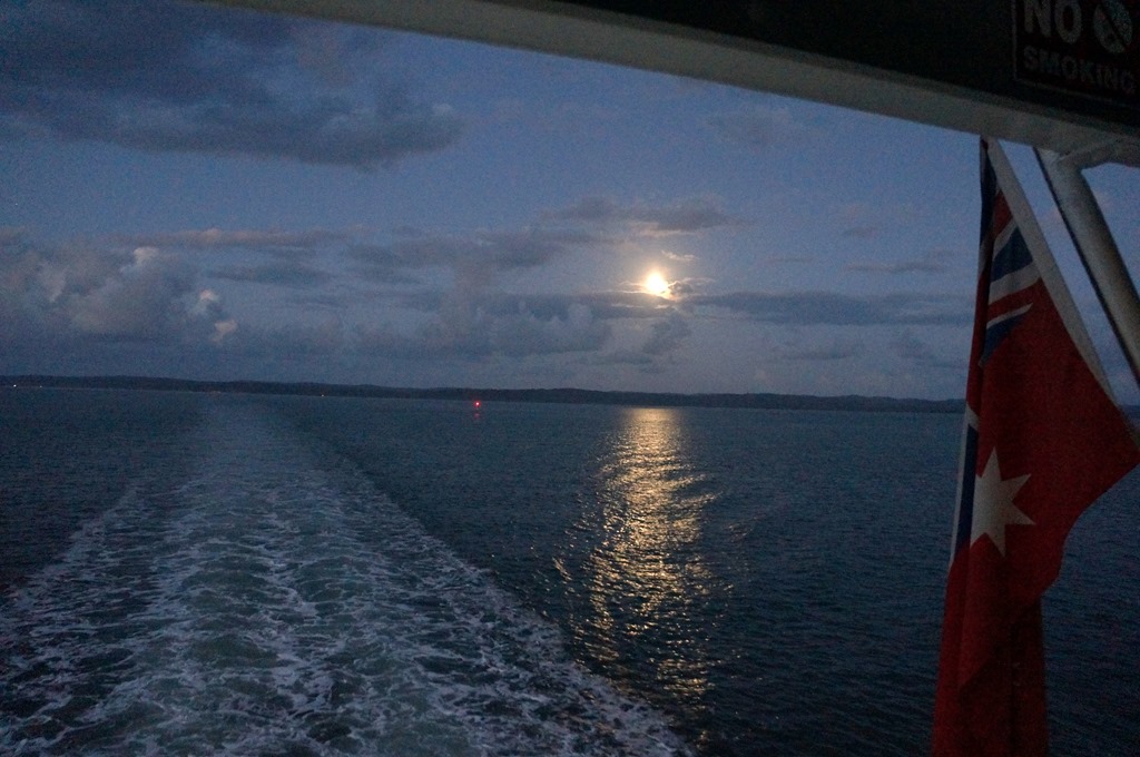 In der Dämmerung sind wir wieder mit der Fähre zurück nach Hervey Bay gefahren.