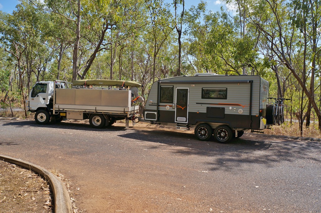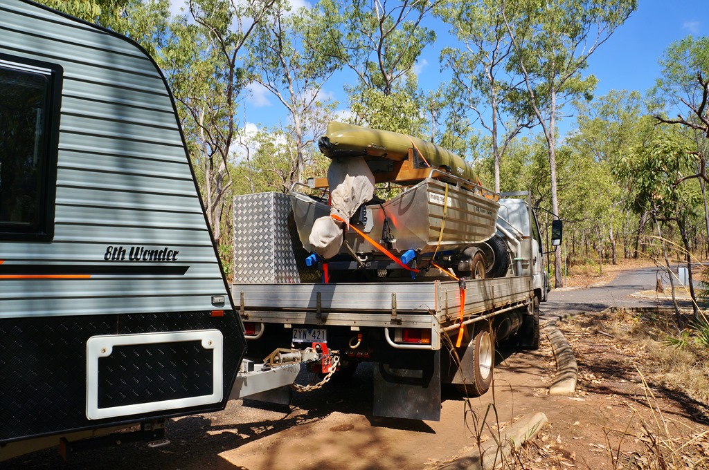 Wir staunen immer wieder was die australischen Camper alles mit sich führen. Der ganze Hausrat, inklusive Motorrad und Boot ist dabei.