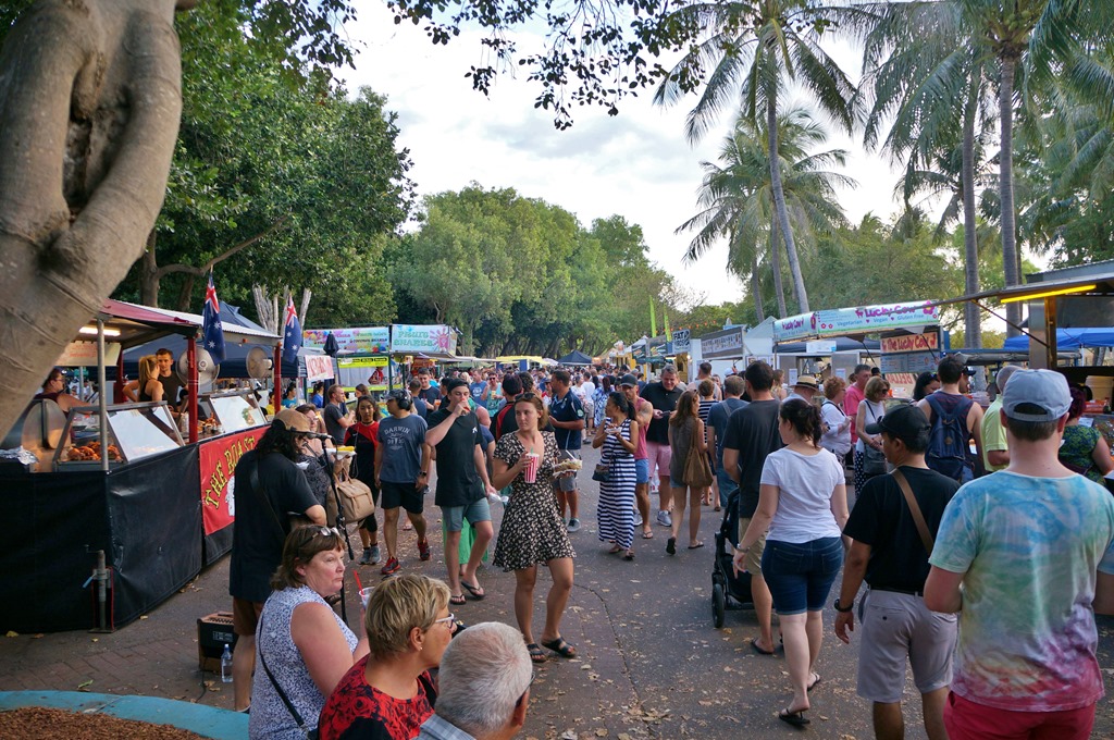 In Darwin besuchen wir am Sonntag Abend den Mindil Beach Market. Neben meist handwerklichen Ständen gibt es auch ein grosses Angebot an Esswaren das von tibetanisch, kontinental, chinesisch bis zum australischen Bush Tucker reicht.