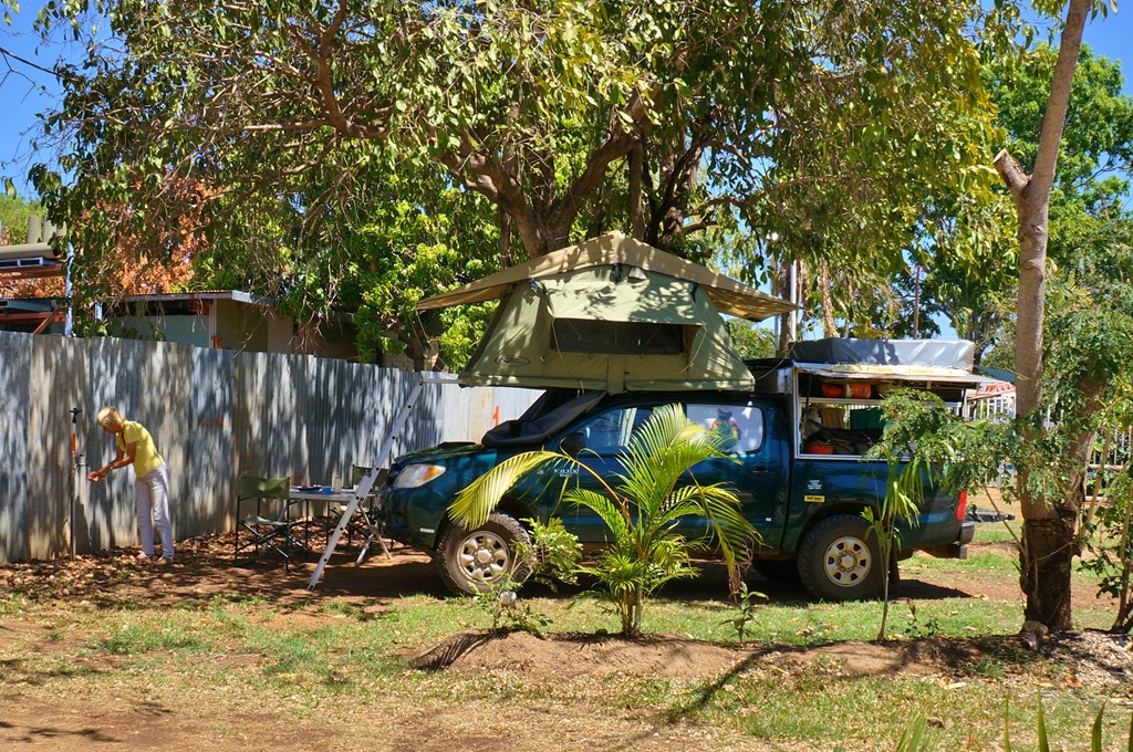Unser Standplatz in Katherine. Wir haben den schönen Swimmingpool auf dem Campingplatz oft benützt. Es ist hier 38°C heiss (im Schatten selbstverständlich).