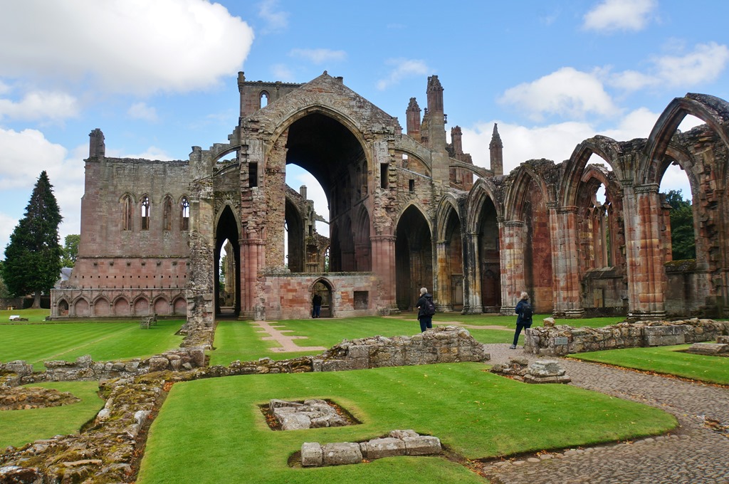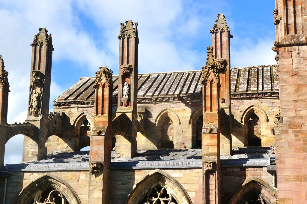 Die ersten Bauten der Melrose Abbey wurden im 12 Jahrhundert errichtet. Über mehrere Jahrhunderte wurde die Abbey umkämpft. Sie wurde von Benediktinern, dem strikteren Flügel dieser Bruderschaft, neu aufgebaut. Diese Benediktiner waren gegen jeden Schmuck in den Kirchen. Sie widmeten sich vor allem dem Gebet und der Arbeit. Da sie sehr fleissig waren, wurden sie über die Jahrhunderte auch reich. Mit dem Reichtum kam auch die Geltungssucht und die Kirche wurde daher wieder ausgeschmückt.