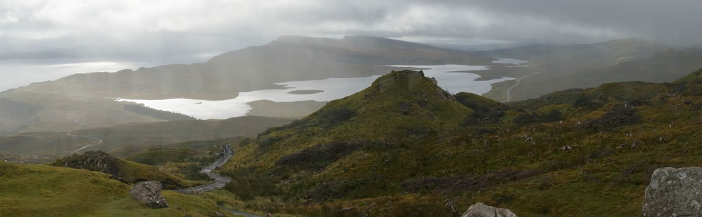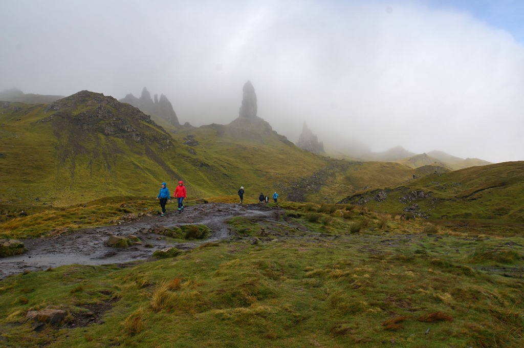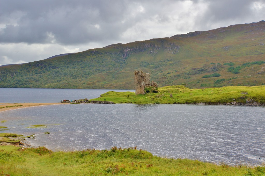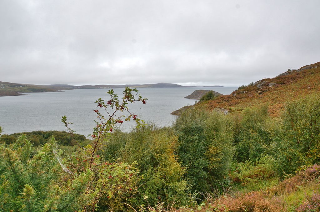 Das Wetter am nächsten Tag ist “schottisch”, d.h. man weiss nie wie es in der nächsten Viertelstunde aussehen wird. Es scheint die Sonne und, plötzlich, buchstäblich aus heiterem Himmel, regnet es. Wir sind selbstverständlich vorbereitet. Die Regenjacke ist eingepackt. Sonnencreme brauchen wir vorläufig noch nicht. Die Sonne schien bis jetzt nie lange genug um eincremen notwendig zum machen.