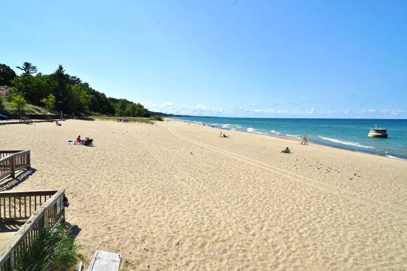 Der Lake Michigan ist sehr gross. Er hat eine Fläche von 58’000 km2 und ist 494 Kilometer lang. Man hat den Eindruck am Ufer eines Meeres zu stehen. Der Wellengang ist vergleichbar mit dem Mittelmeer. Das Wasser lädt aber nicht wirklich zum baden ein. Es ist ziemlich kühl und ist, im Gegensatz zum Mittelmeer, natürlich nicht salzig.