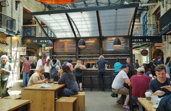 Wieder ziehen sehr dunkle Wolken auf. Wir retten uns in ein, zum Glück offenes, Café und warten bis das Gewitter weitergezogen ist.