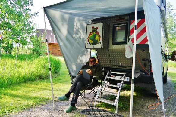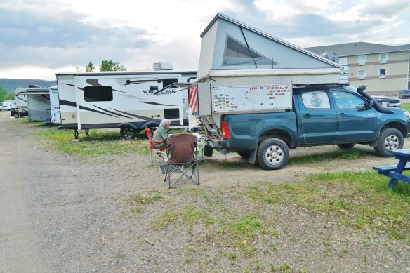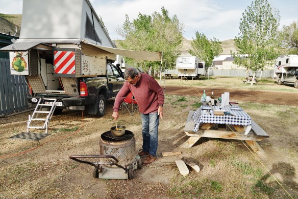 Auf dem einzigen, ziemlich ungepflegten Campingplatz der Stadt übernachten wir. Der Besitzer war ein dauerlächlender Chinese der kaum Englisch konnte. Die meisten der Camper sind Arbeiter auf einer nahe gelegenen Strassenbaustelle.