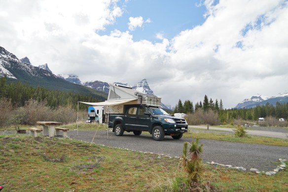 Niedliche Mitbewohner, Pfeiffhasen, auf dem Campingplatz von Banff.