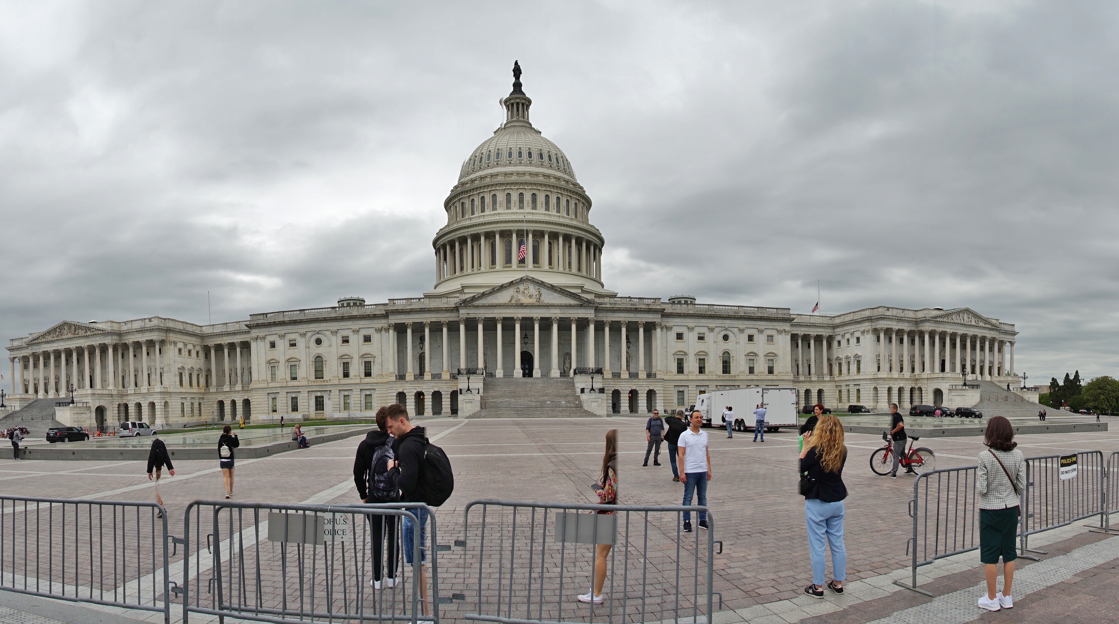 Die andere Seite des Gebäudes. Der Bau repräsentiert gut die Grösse der USA. Die Flaggen stehen auf halbmast. Wir fragten einen Polizisten warum das so sei. Er wusste es auch nicht so recht. Er meinte, dass einige Senatsmitglieder kürzlich verstorben seien und die Flaggen am Freitag wieder ganz aufgezogen würden.