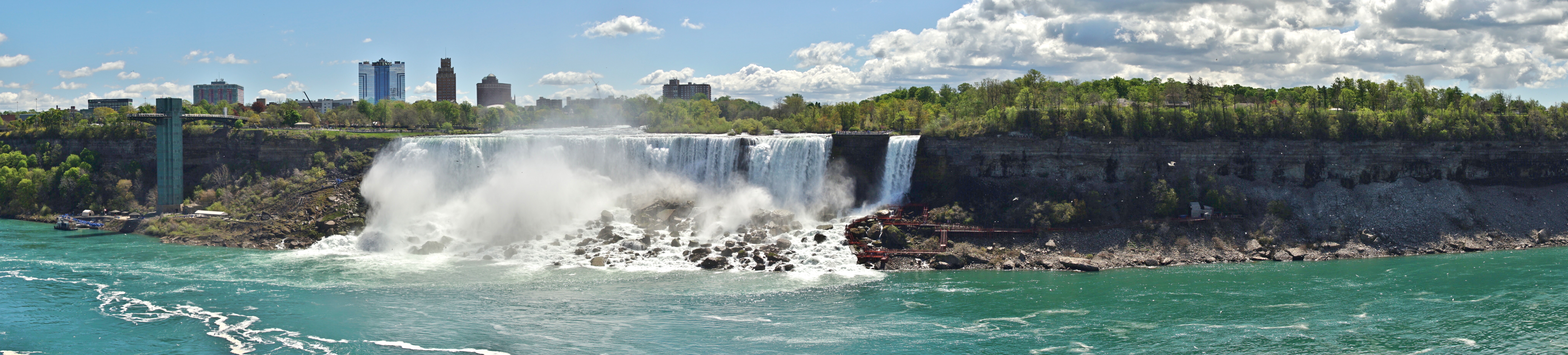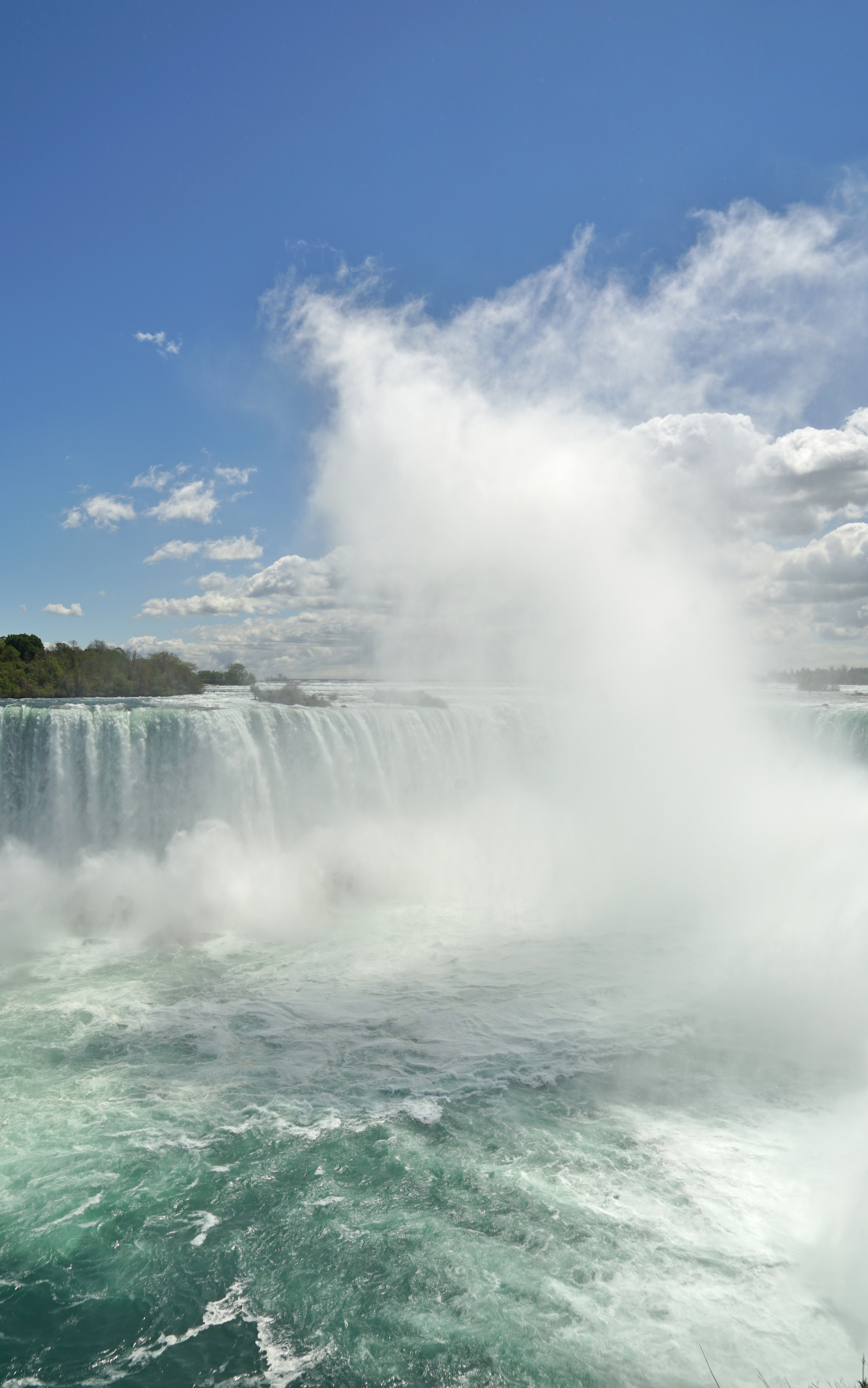 Wir stehen auf der kanadischen Seite. Gegenüber liegen die USA.
