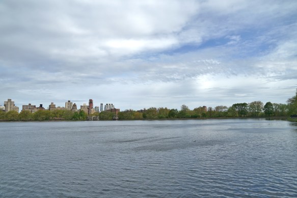 Über dem Reservoirsee im Park sieht man die Skyline von New York.