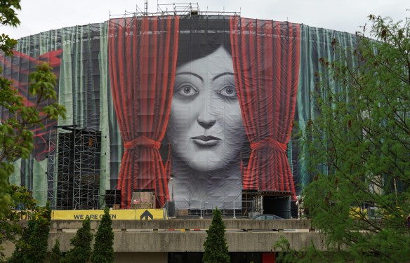 Ein Gebäude wird renoviert und aufwändig verhüllt.