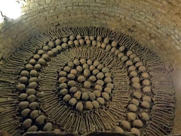 Etwas makaber dann der Rundgang durch die Katakomben. Hier sind etwa 70’000 Menschen bestattet worden und inzwischen wurden etwa 25’000 Skelette gefunden. Die Gebeine wurden in kunstvollen Ornamenten ausgelegt.