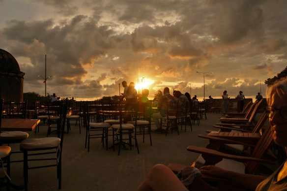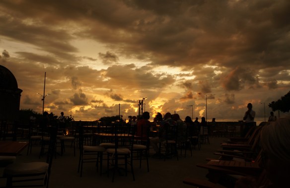 Auch bei Regenwetter kann man in Cartagena gemütlich Kaffee trinken.
