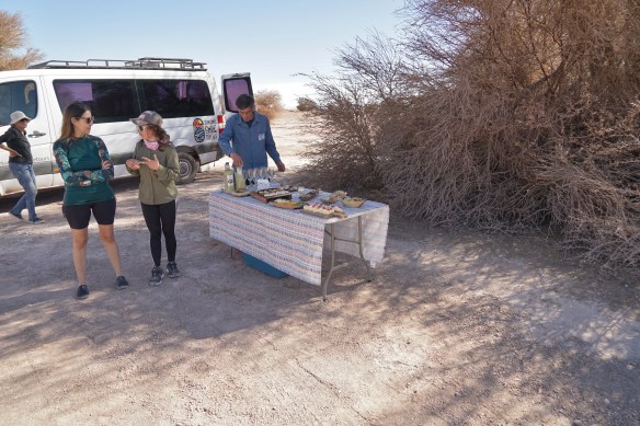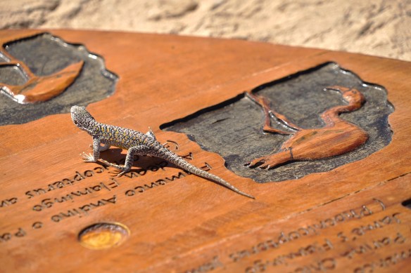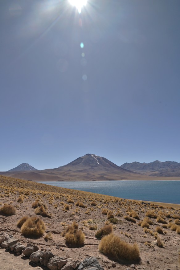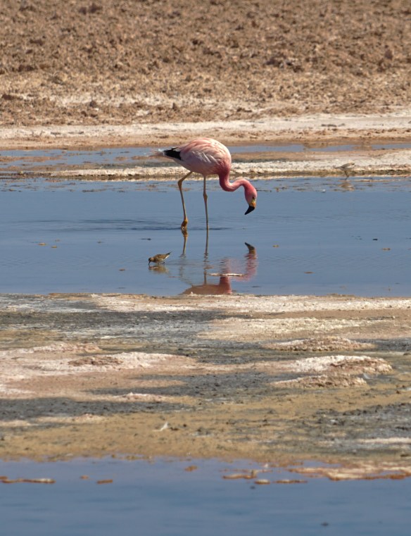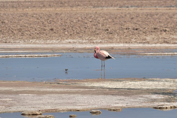 Hier bei den Lagunen der Flamingos ist schon wieder sehr warm (22°). Wir können unsere Jacken im Auto lassen. Auch die kleine Echse sonnt sich wieder.