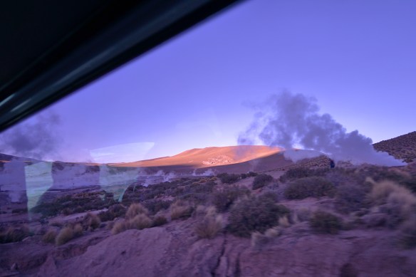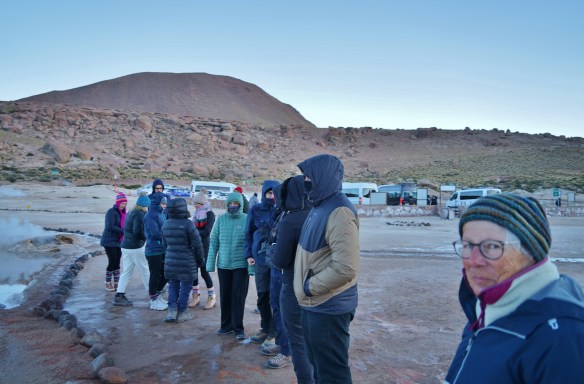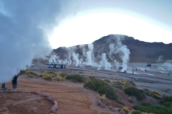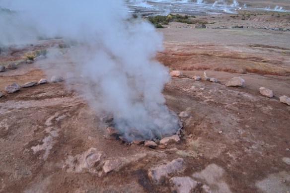 Wir werden nun auch informiert, weshalb es so wichtig ist, dass man frühmorgens hier ist. Die Geysire speien, im Gegensatz zu jenen in Island, nicht Wasser, sondern Dampf aus. Sobald sich dann mit dem Sonnenaufgang die Luft erwärmt, sind die Dampfwolken kaum mehr sichtbar.