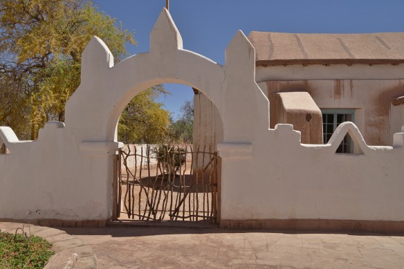 Das Kirchentor von San Pedro die schon 1641 gegründet wurde. Bei ihrem Bau benutzte man Riemen aus Lamaleder anstelle von Nägeln. Ihre Mauern sind aus Luftziegeln, der Dachstock aus Holz aus der Gegend. Das Dach ist aus Kaktusbrettern die mit Stroh und Lehm bedeckt sind.