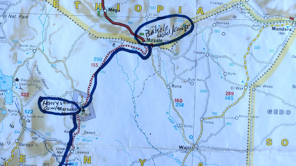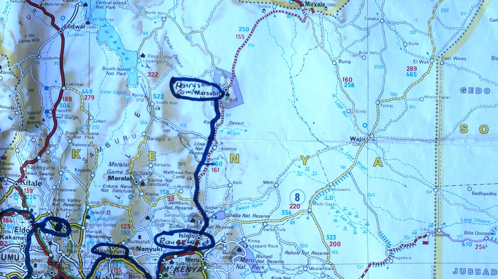 Henry ist leider zur Zeit in Moyale, wir lernen also den verrückten Schweizer nicht kennen. Seine Frau Rosanna klärt uns über den weiteren Weg bis zur Grenze in Moyale auf: die ersten ca. 60km seien neu geteert, dann kommt eine steinige Piste (Henry fahre die Strecke in fünf Stunden). Sie rät uns, früh los zu fahren. Wir trauen uns nicht zu, dass wir Henry’s Reisezeit einhalten können. Um 6 Uhr fahren wir los um sicher zu sein, dass wir Moyale noch am gleichen Tag erreichen.