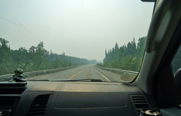 Auf der Fahrt immer noch das gleiche Bild. Der Rauch trübt die Luft.