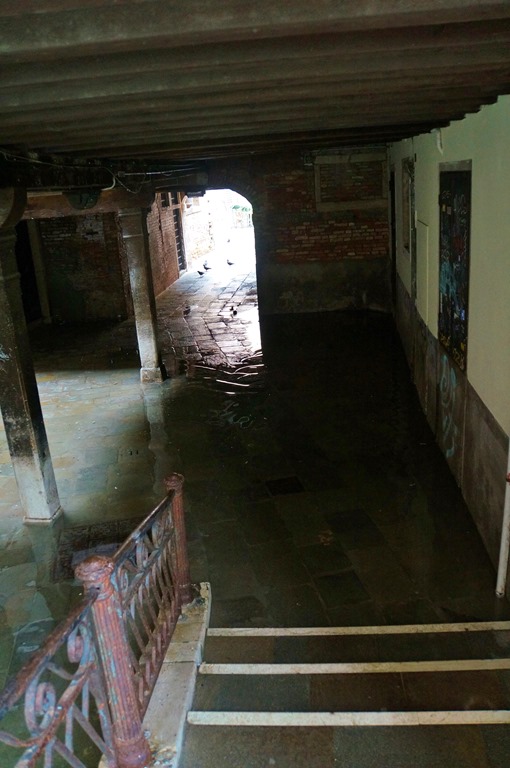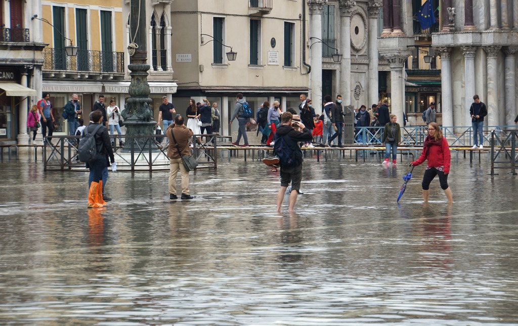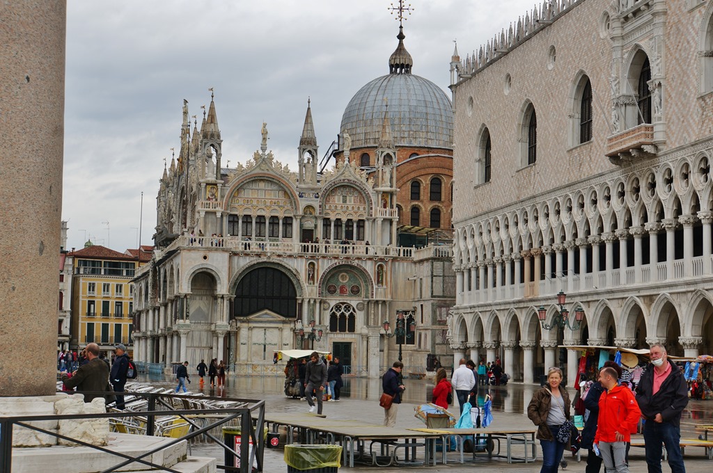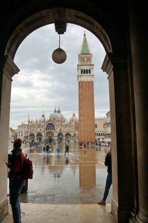Am berühmten Markusplatz herrschte keine grosse Hektik. Den Touristen werden zum Schutz vor nassen Füssen bunte Plastiküberzüge verkauft. Sogar der Kellner arbeitet in Gummistiefeln. Die Italiener haben sich an das gelegentliche “Aqua alta” gewöhnt und stellen sofort Stege auf.