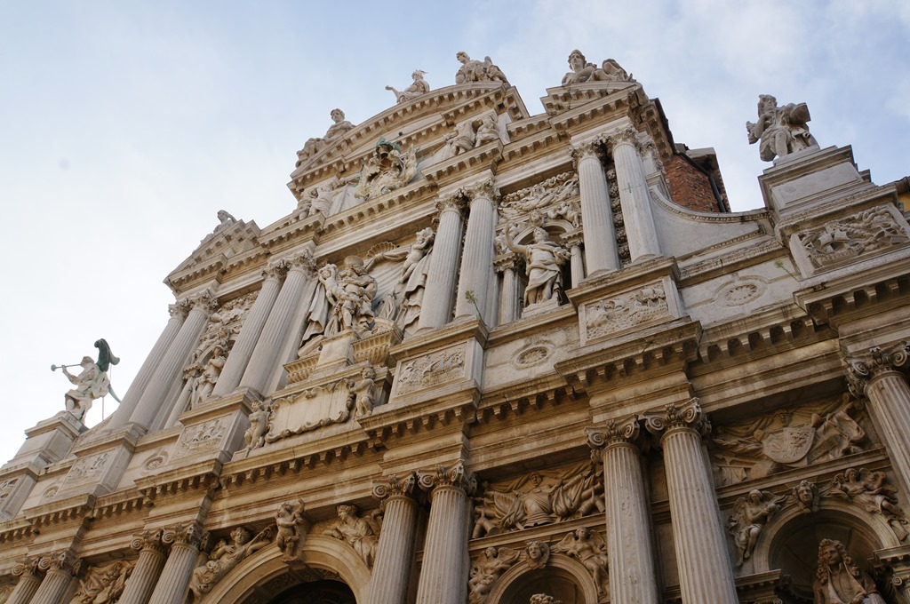 Überall sind Häuser verziert mit Bildhauerarbeiten.