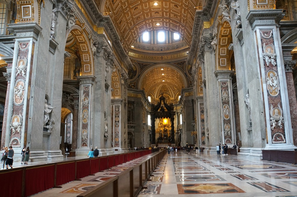 In der Peterskirche beeindruckt vor allem die Grösse und die verschwenderische Pracht der Gemälde und Altäre.