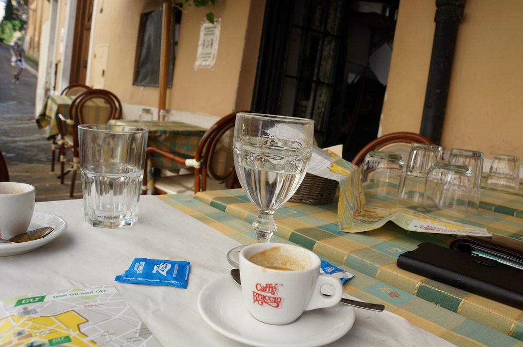 und machen Mittagspause in einem kleinen Strassencafé. Es wird uns herrlicher Schinken und Bruschette serviert. Der Café zum Abschluss darf in Italien natürlich nicht fehlen. Das Verhältnis von Café zu Grappa empfand ich aber etwas gar grosszügig.