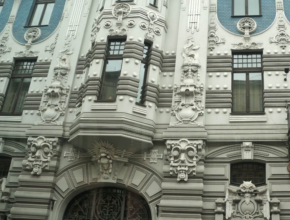 Riga ist berühmt für seine Jugendstilbauten. Viele namhafte Architekten lieferten sich einen Wettbewerb um die schönsten Fassaden. So entstanden ganze Strassenzüge im Jugendstil. Der berühmte Architekt Mikhail Eisenstein hat die beiden Häuser in der Elizebetas lela 10a und10b gebaut, sowie auch die beiden gegenüberliegenden Gebäude.