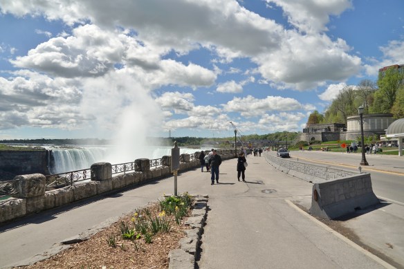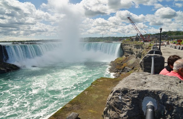 Wir stehen auf der kanadischen Seite. Gegenüber liegen die USA.