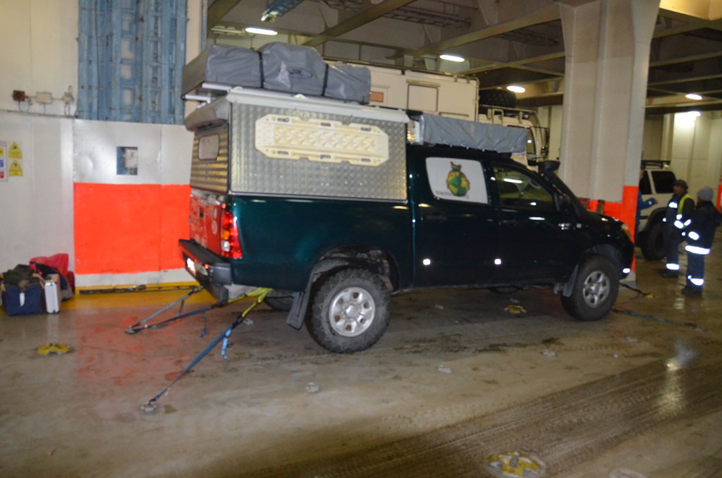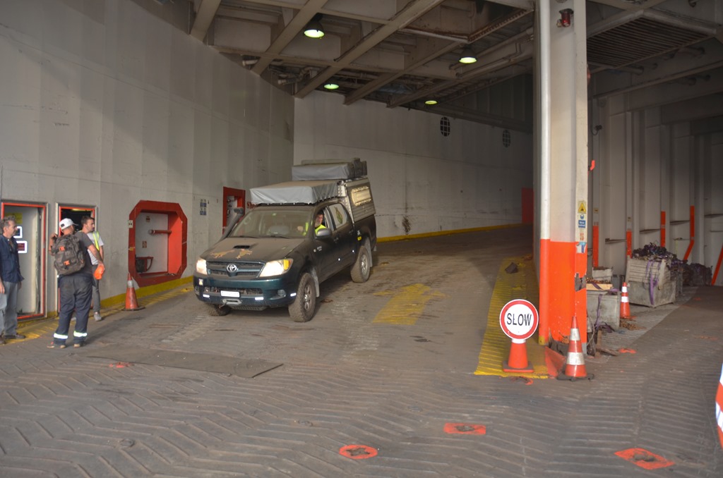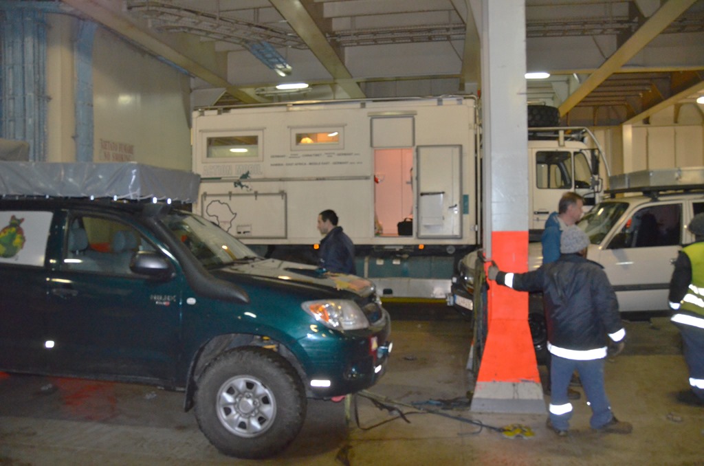 Der letzte Akt unserer Schiffsreise: Die Pässe sind gestempelt und die Autos kontrolliert. Wir können los fahren.