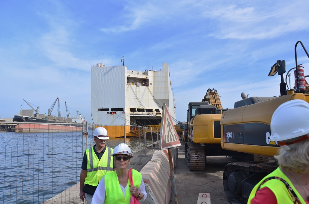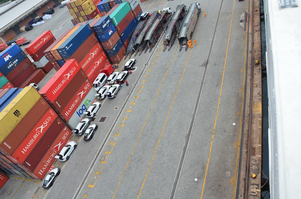 Untere Anderem werden auch ca. 300 neue Autos vom Schiff gefahren und sofort auf Lastwagen verladen.