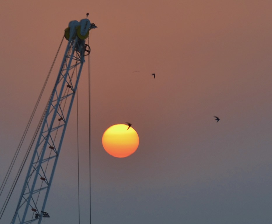 Wir erleben eine ganz ruhige Fahrt über das flache Meer. Die in den vergangenen Tagen etwas stürmischen Winde haben sich gelegt.