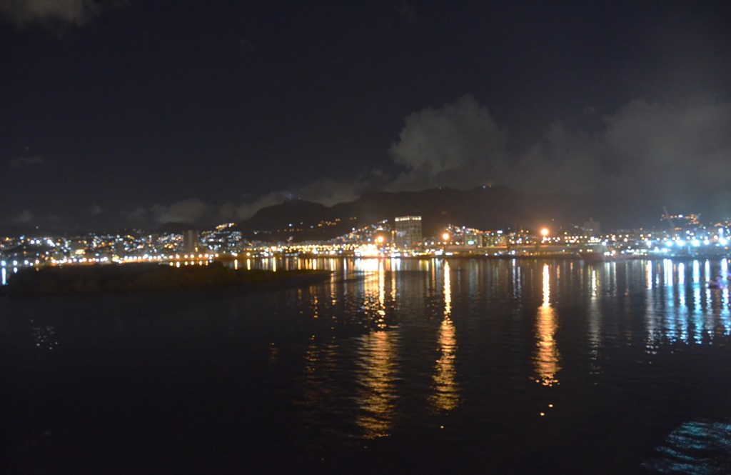 Der Hafen liegt scheinbar mitten in der Stadt. Wir fahren unter einer Brücke durch. Auf beiden Seiten liegen stark bebaute Hügel. Ein Tug-Boat begleitet uns und stellt sicher, dass wir nicht zu nahe ans Ufer fahren.