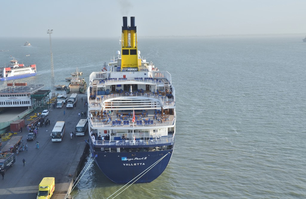 Während wir den Tag in Banjul verbracht haben, hat am Hafen ein kleines Kreuzfahrtschiff angelegt.