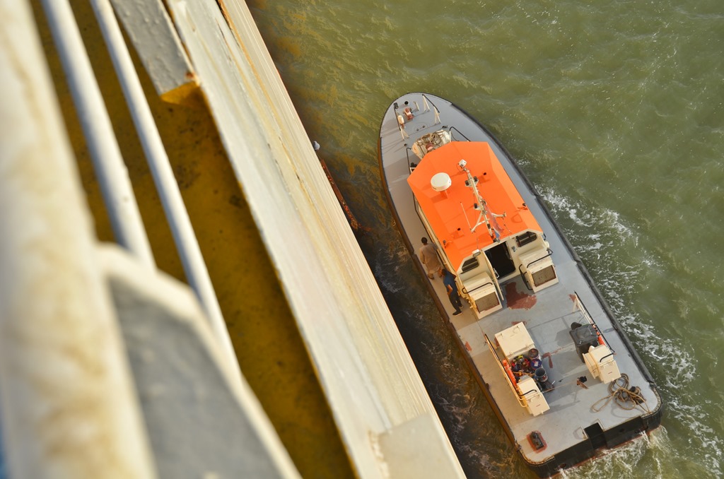 Der Lotse kommt an Bord und führt unser Schiff sicher durch die enge Einfahrt an den Liegeplatz.