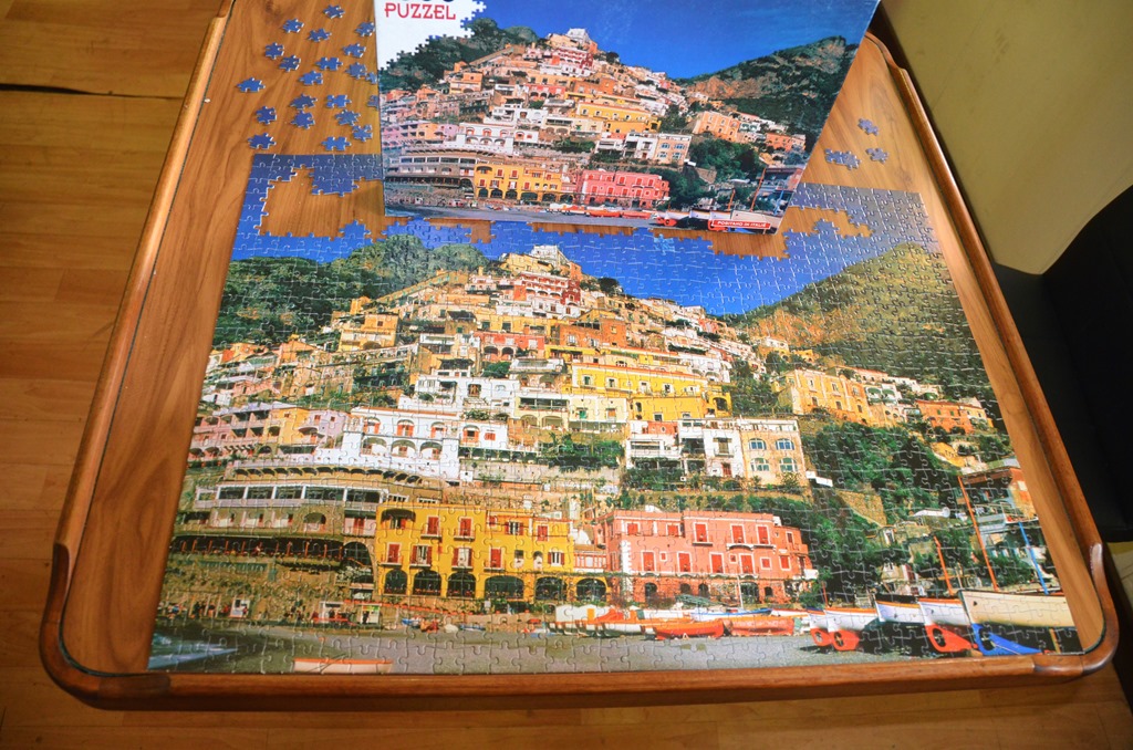 Christine und Franz beschäftigen sich mit einem Puzzle aus 1000 Teilen.