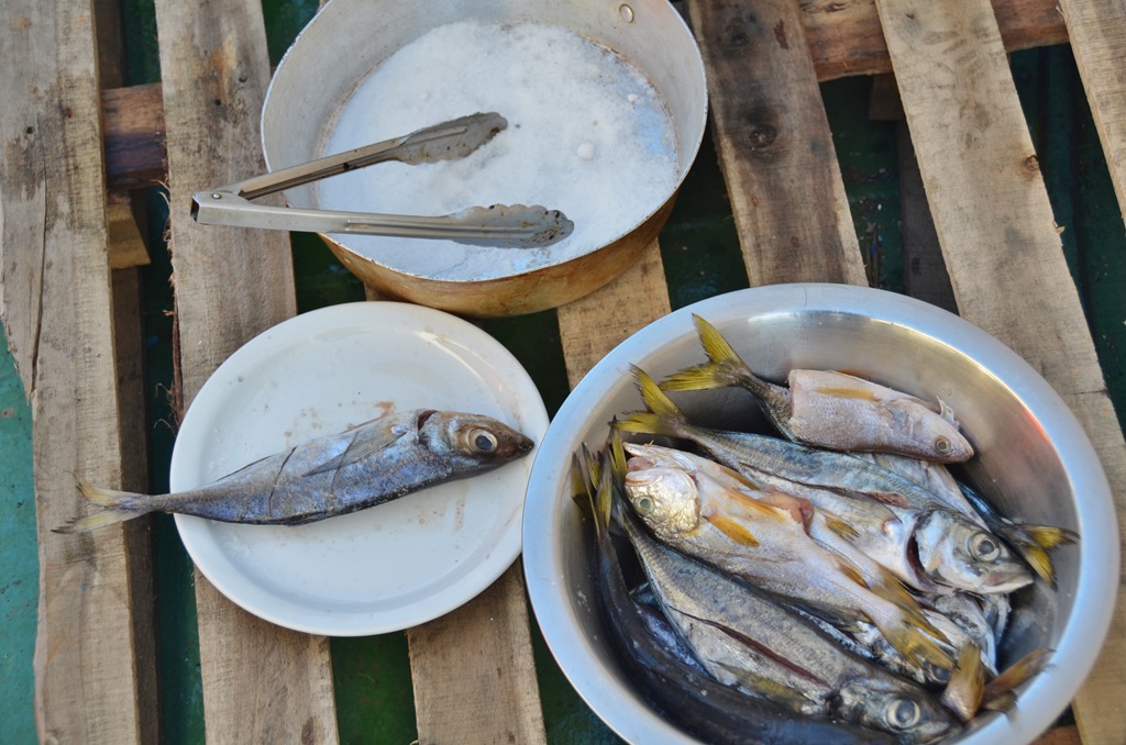 Obwohl die Wachhabenden auf der Brücke noch gestern Abend sicher waren, dass in den kommenden Tagen immer die Sonne scheinen werde, hat es heute morgen recht stark geregnet. Die Temperatur ist gleich hoch, bei etwa 30° geblieben.